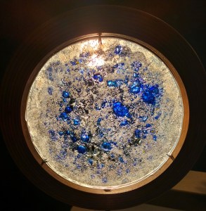 Nous travaillons avec la technique du verre fusionné et thermoformé. Nous utilisons des oxydes, des pierres broyés, des métaux, des ocres qui réagissent à la cuisson donnant des couleurs ou des formes originales et toujours renouvelées.