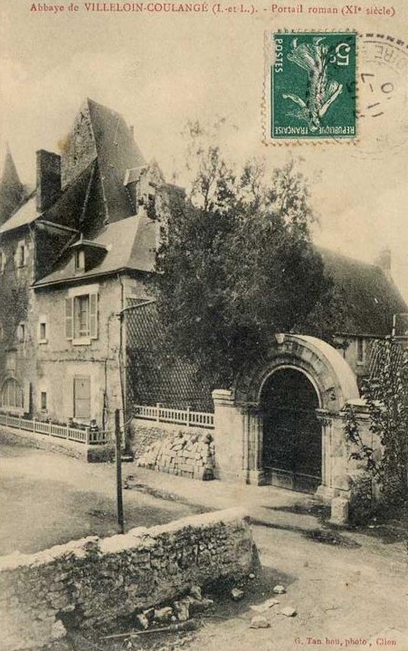 Tout commença en 1906, le 3 août précisément, quand Léopold Mabilleau, intellectuel de sa province, acheta une partie de l’abbaye de Villeloin. Cet homme éclairé et mondain passionné de patrimoine décida d’acquérir le portail en pierre de l’église de Coulangé, alors propriété de Joseph Pichard, tonnelier et négociant en vins. On suppose que cet amateur de vielle pierre jugea préférable de voir cet ouvrage richement orné précéder l’entrée de sa demeure plutôt qu’un caquetoire d’Eglise ne servant plus que de lieu de stockage. Et pourtant, même si l’édifice était désacralisé depuis presque 100 ans, n’y a t-il pas dans l’architecture un caractère qui relèverait du sacré, de l’intouchable. Certains le restaurent d’autres le monnayent… Il le fit donc démonter puis rebâtir à la fin de l’année 1906 dans le prolongement de son jardin. Pour lui, ce fut une réussite et plusieurs cartes postales en noir et blanc témoignent de son attrait pittoresque.